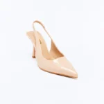 The Bari Patent Slingback Pumps are sleek, polished heels featuring a glossy patent finish and slingback design for a refined, elegant look.